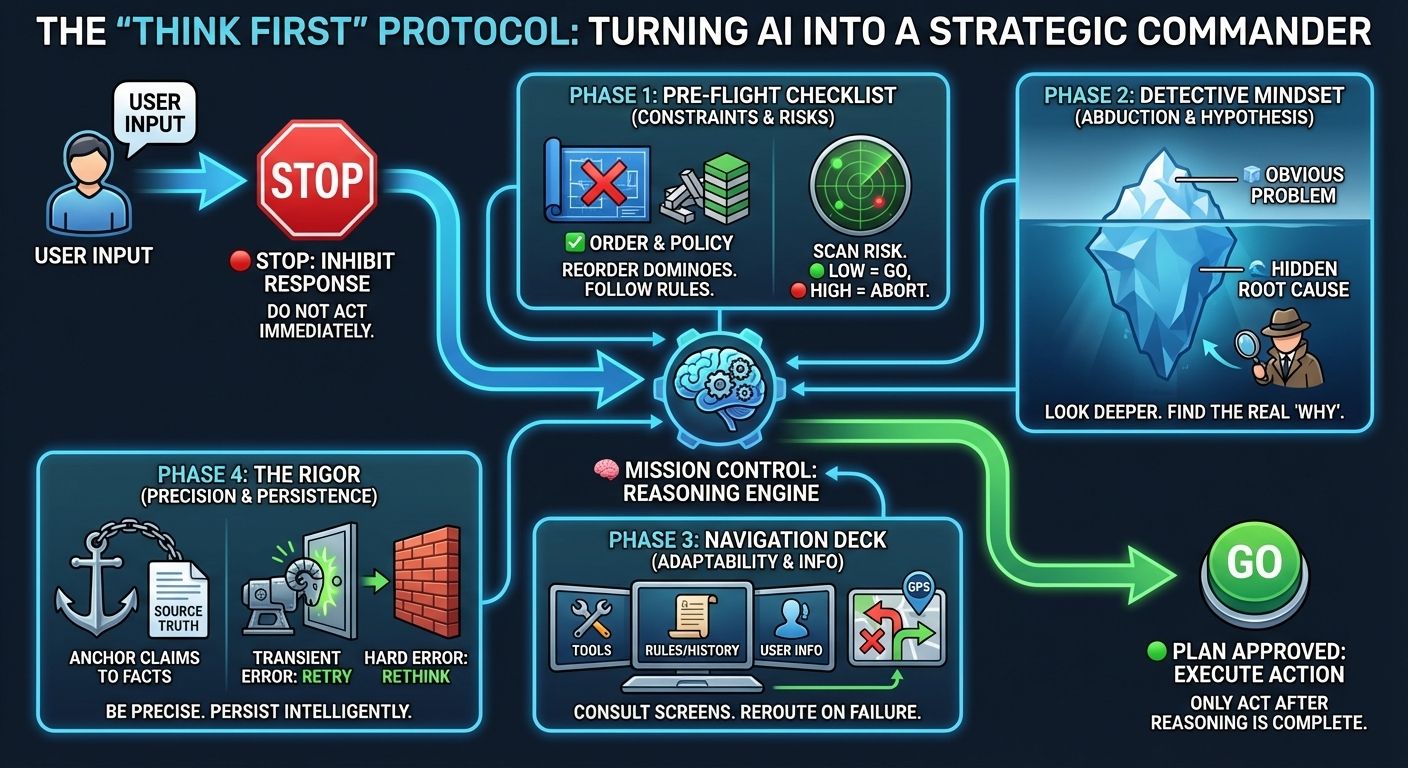 This prompt teaches an AI to think before acting. It tells the AI to slow down.